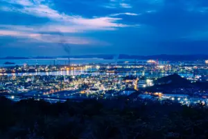 倉敷市の不動産投資を語る上で欠かせないのが、日本最大級の工業地帯の一つである「水島工業地帯」の存在です。この工業地帯は単なる製造拠点ではなく、倉敷市の賃貸需要を支える最も重要な「雇用の源泉」として機能しています。